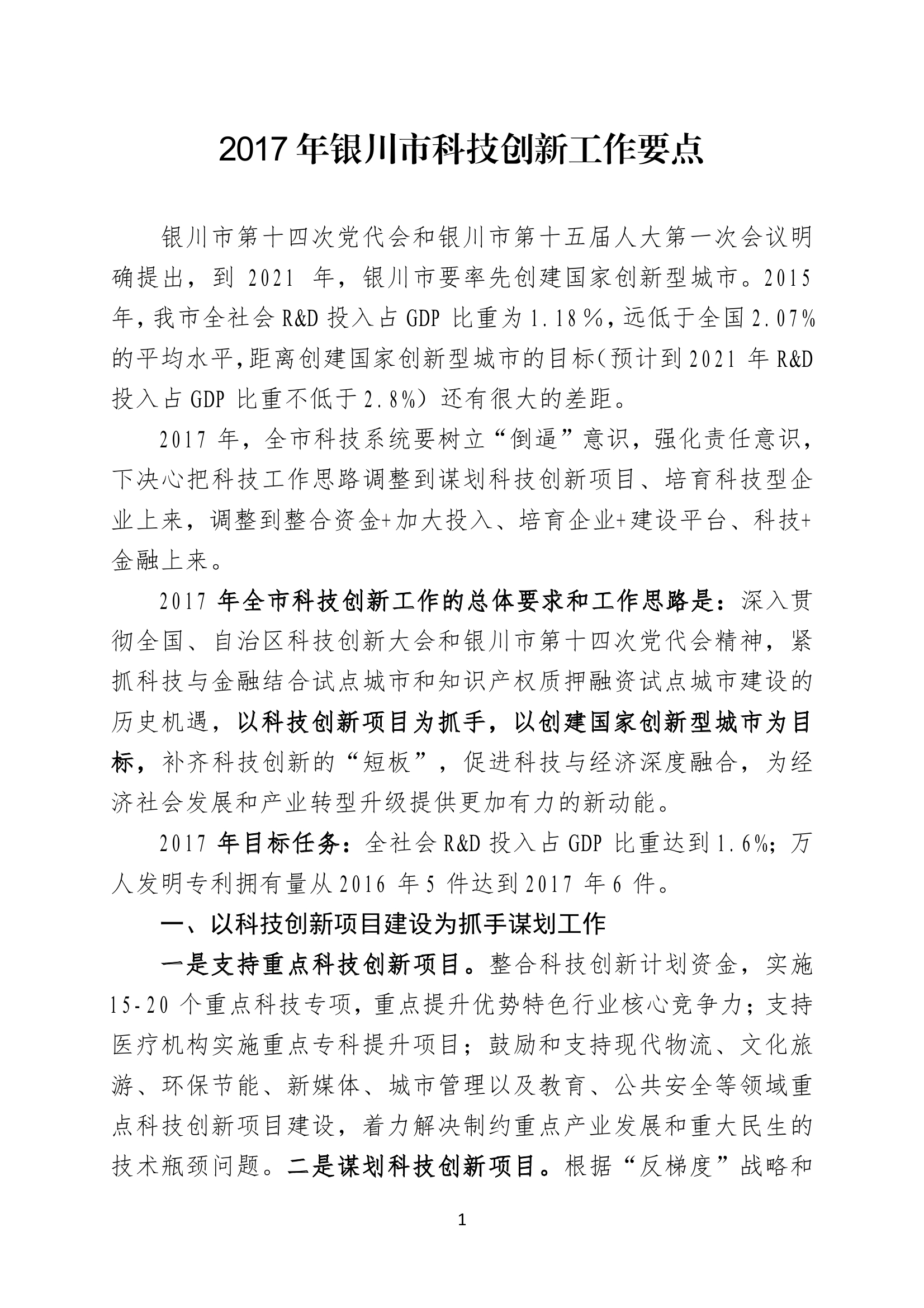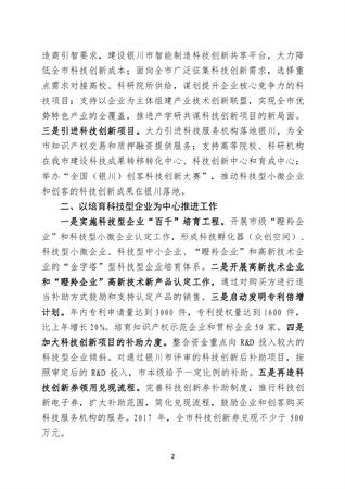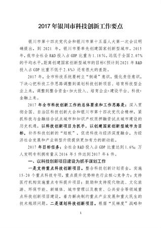 2017年银川市科技创新工作要点